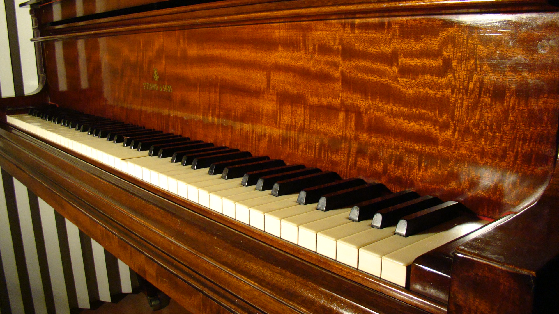 This masterpiece has many shades of color depending upon the light in the room. Never before have you seen such a beautifly pleasing grain as on this piano.